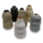 These vases or 'bottles' are glazed with overlapping gold, pewter & white colours which melt into each other, giving the effect of flow & movement